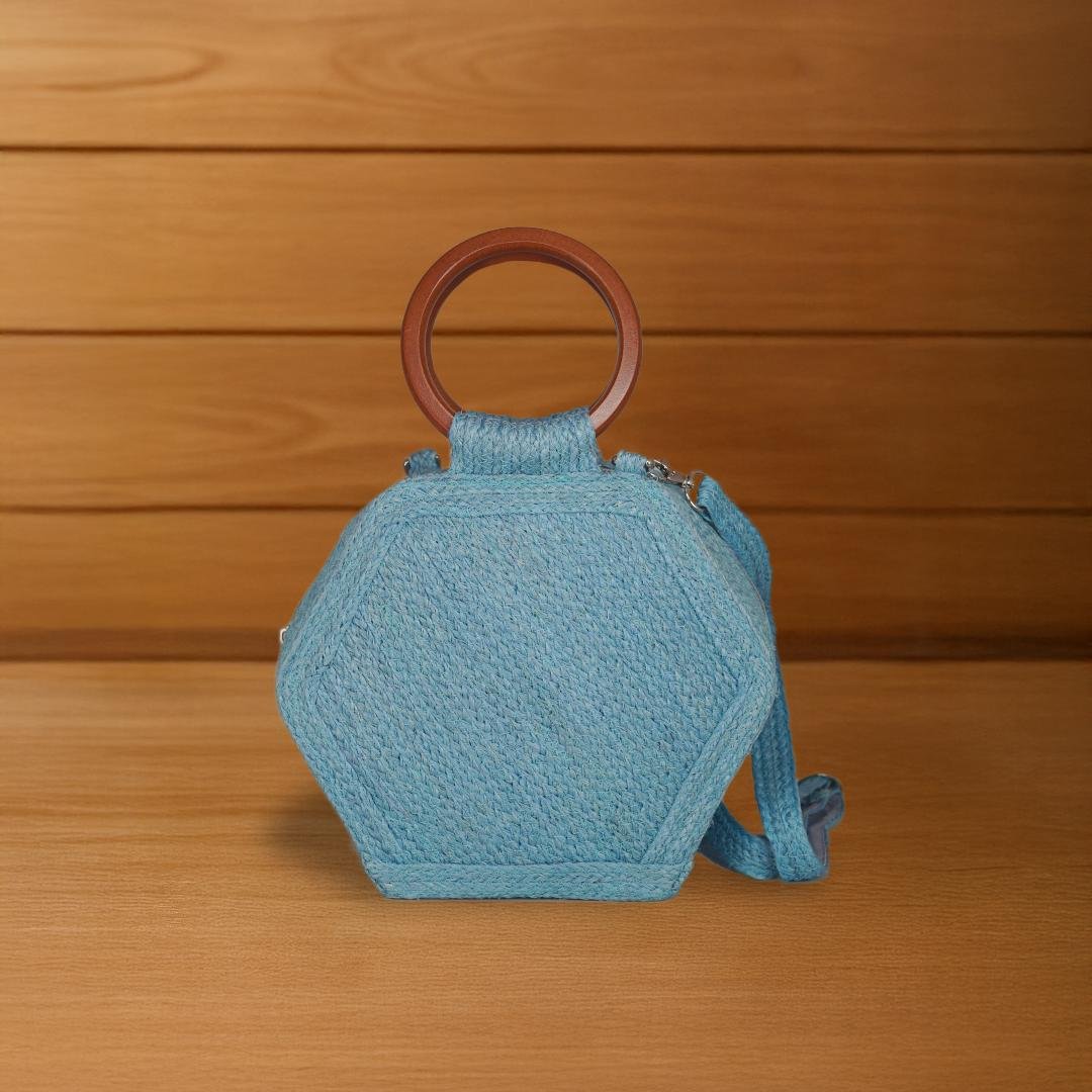 กระเป๋าถือทรงหกเหลี่ยม ทอมือจากเส้นใยป่านศรนารายณ์ธรรมชาติ โดดเด่นด้วยดีไซน์เรขาคณิตทันสมัย มาพร้อมหูจับไม้ทรงกลม เพิ่มความหรูหราแบบคลาสสิก เหมาะทั้งใช้ประจำวันและในโอกาสพิเศษ
