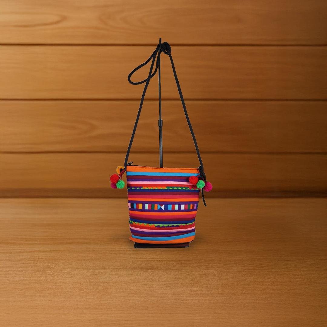 กระเป๋าสะพายข้างลายจิก จังหวัดเชียงรายกระเป๋าสะพายสายยาวจากผ้าทอมือ ลวดลายจิกสีสันสดใส สะท้อนวัฒนธรรมของชาวเขาในเชียงราย เหมาะสำหรับใส่ของใช้จำเป็น เช่น โทรศัพท์หรือกระเป๋าสตางค์ ใช้งานง่าย สะดวก และเปี่ยมด้วยคุณค่าทางวัฒนธรรม