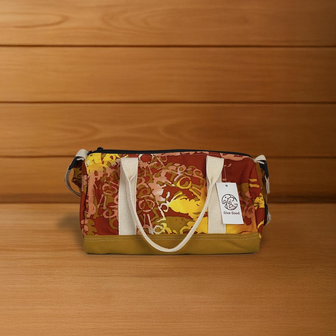 กระเป๋าทรงหมอนผลิตจากผ้าทอมือย้อมสีธรรมชาติ โดดเด่นด้วยลวดลายแฮนด์เมดโทนสีสดใส สะท้อนงานศิลป์ร่วมสมัย ใช้งานได้หลากหลาย ทั้งเป็นกระเป๋ายิม กระเป๋าเดินทาง หรือกระเป๋าถือในวันสบายๆ