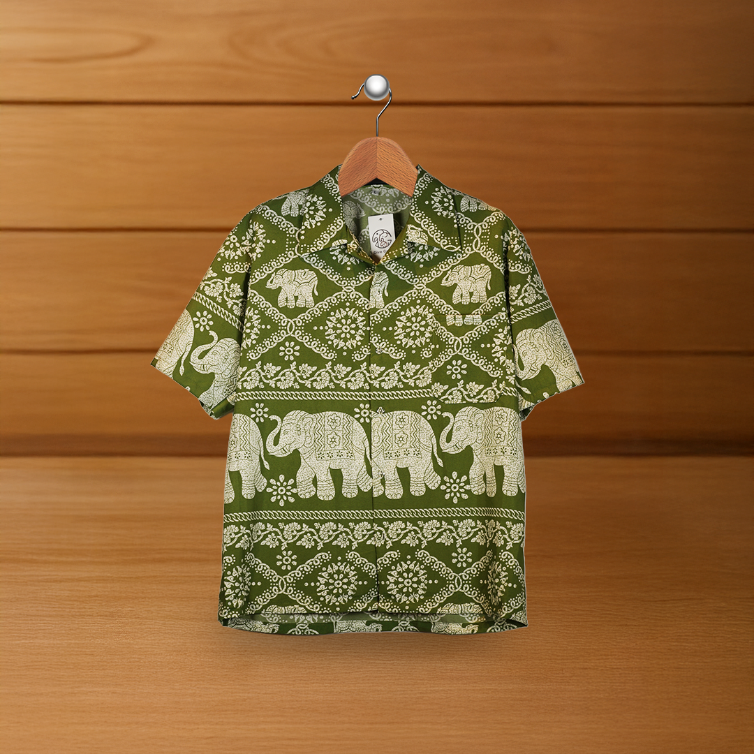 เสื้อเชิ้ตแขนสั้นทรงฮาวาย ผลิตจากผ้าบางเบาเนื้อนุ่ม ระบายอากาศได้ดี ตกแต่งด้วยลายช้างและลวดลายพื้นเมืองสไตล์มารุที่มีเอกลักษณ์ โดดเด่นด้วยสีสันสดใสและดีไซน์ที่คลาสสิก เหมาะสำหรับใส่เที่ยวทะเล เที่ยวงานวัด หรือวันพักผ่อนสบาย ๆ เพิ่มความมีสไตล์ให้ทุกกิจกรรมของคุณอย่างลงตัว