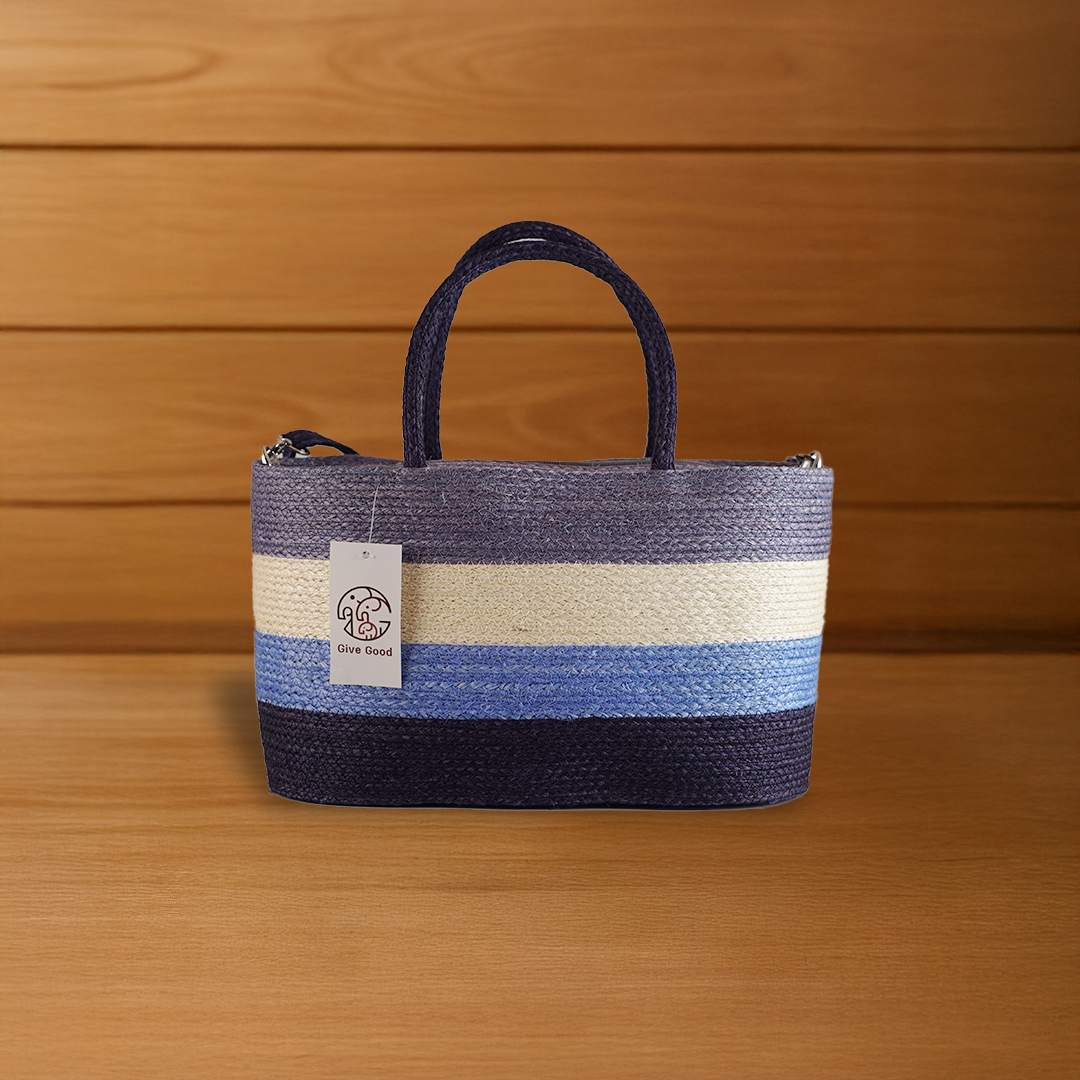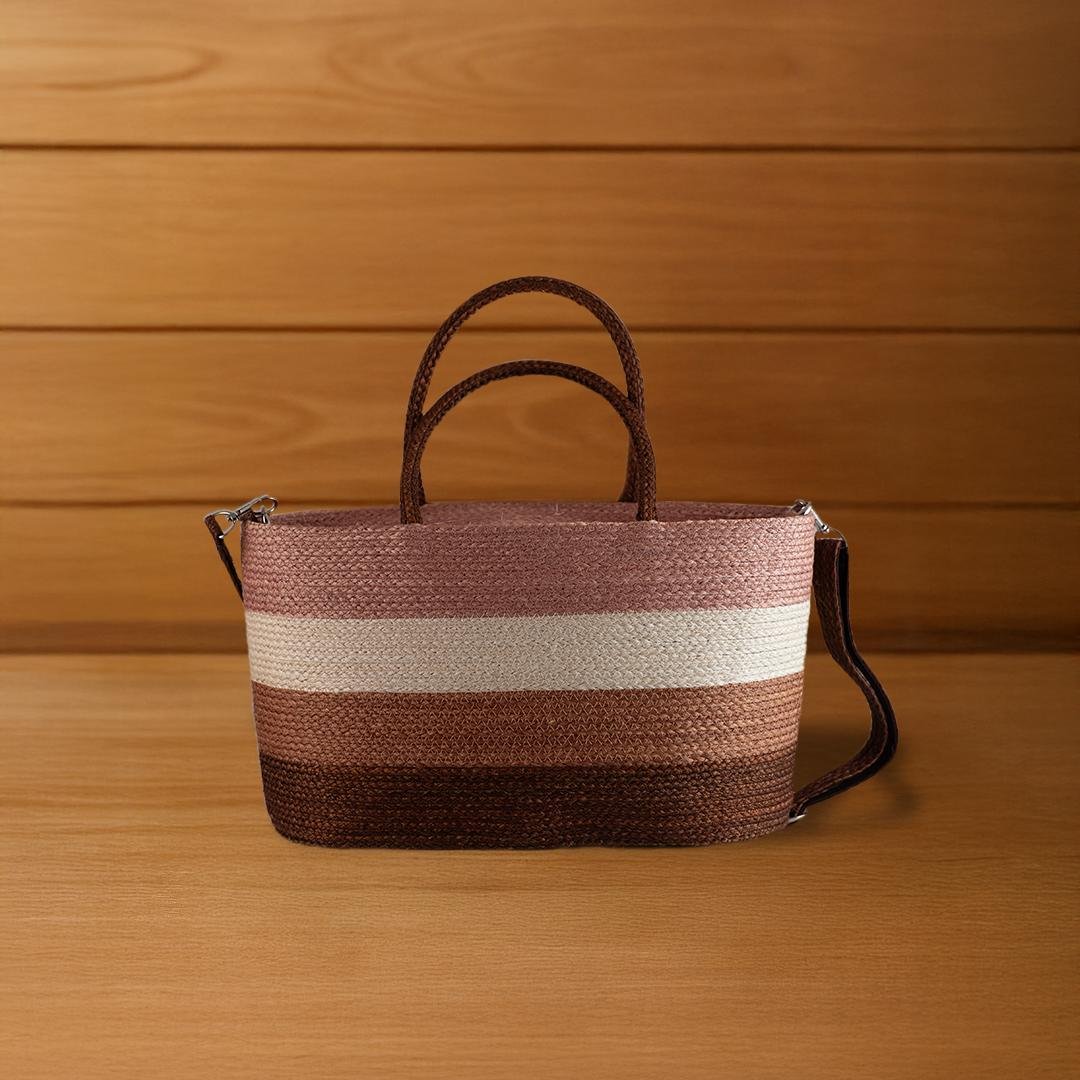 This two-tone Louis-style bag, made from natural Sansevieria fiber, features a spacious base and elegant horizontal color-block design. Ideal for daily use or as a stylish community-crafted souvenir.
