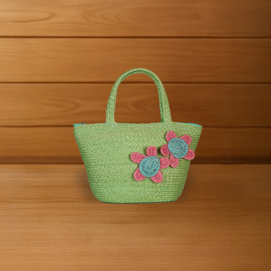 This charming tote bag is handcrafted from durable, eco-friendly Sansevieria fiber and features a handmade "Eed flower"—a colorful fabric or yarn bloom—sewn on the front. The natural texture pairs perfectly with the playful floral detail, making it ideal for light daily use, whether you're heading to the market, strolling around, or enjoying a laid-back day with a cheerful touch.