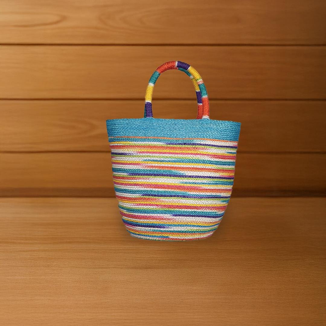 Crafted from natural Sansevieria fiber, this vibrant rainbow-handle bag features a spacious shape and eye-catching multicolor design. Ideal for daily use, casual outings, or as a unique fashion statement.