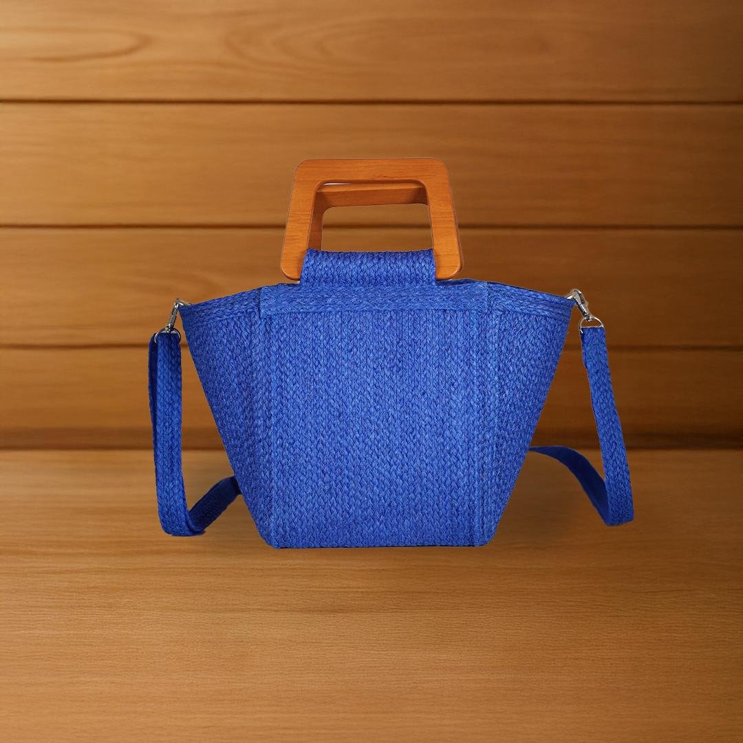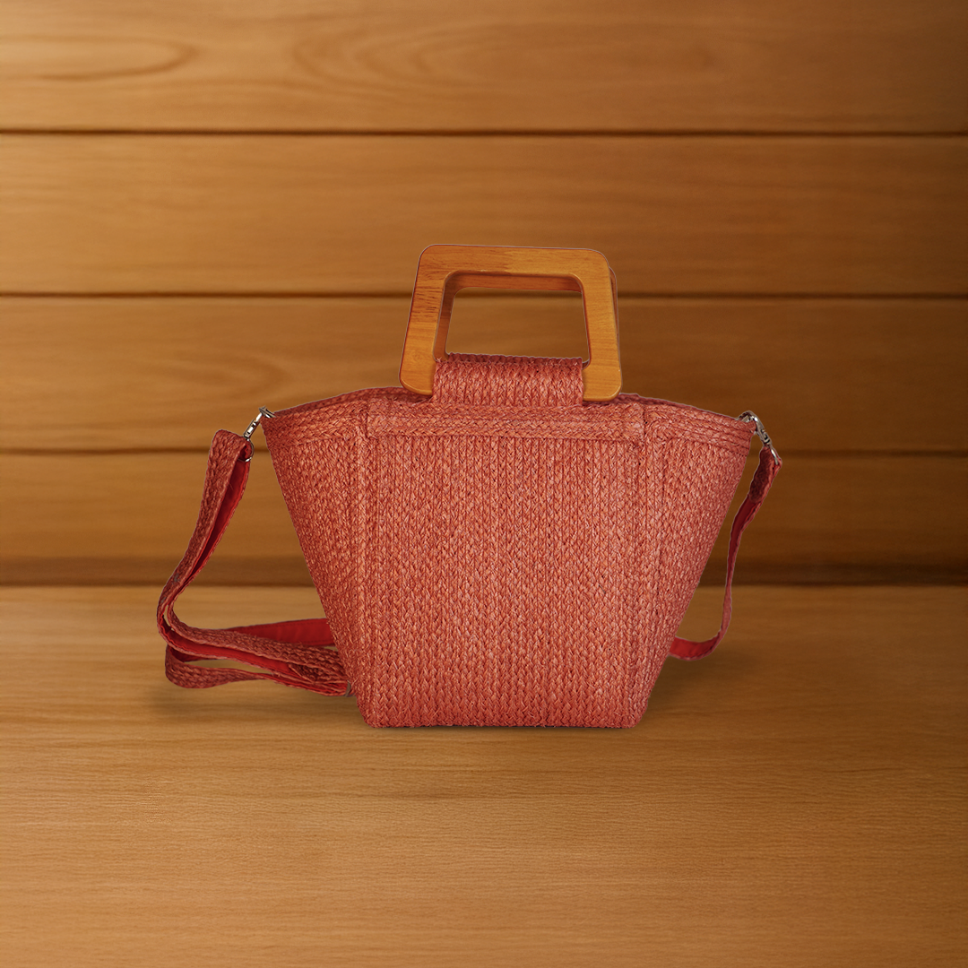 This trapezoid-shaped bag is handwoven from Sansevieria fiber using a tight, refined technique. It features the subtle yet dimensional “White Duck” vertical weave pattern, complemented by medium-sized square wooden handles and a delicate tassel for added charm. A perfect balance of natural elegance and modern style—ideal for everyday use or as a fashion statement.
