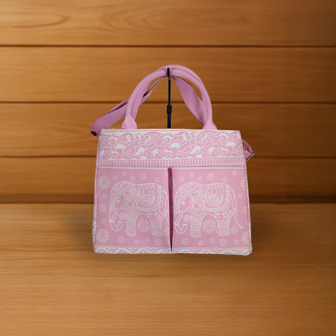 Double-Zipper Fabric Tote – Bold Thai Elephant Pattern with Everyday Functionality