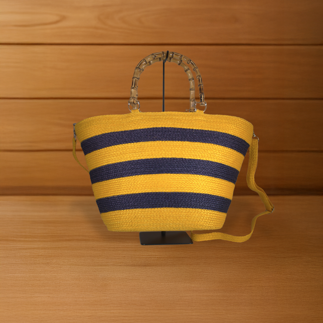 This Louis-style handbag is delicately handwoven from natural Sansevieria fiber, featuring a soft rustic texture and horizontal stripe patterns for added character. Finished with rope-wrapped wooden handles in a Japanese-inspired design, it beautifully blends traditional charm with modern style—perfect for relaxed days or as a tropical fashion statement.