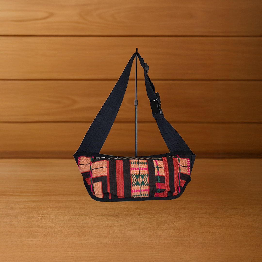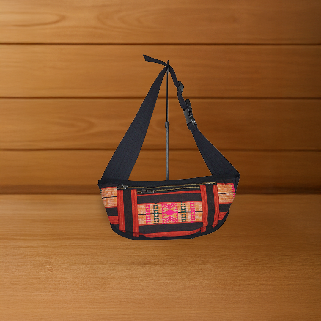Hill tribe waist bag handmade from traditional woven fabric (e.g. Hmong, Akha). Colorful, practical, and perfect for travel — a reflection of Northern Thai heritage.
